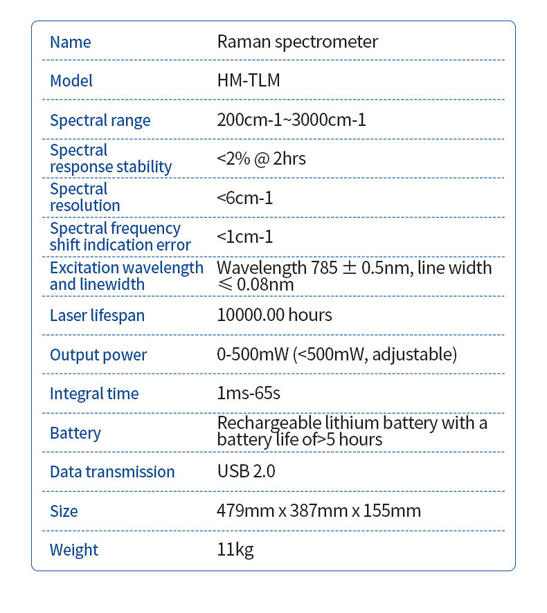 Excitation wavelength and linewidth: 785 ± 0.5nm, linewidth ≤ 0.08nm